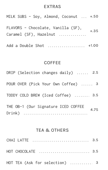 For those who prefer drip coffee, Beck's has a selection of fresh brews including Drip Coffee and the more specialized Pour Over method, which ensures every cup is brewed to perfection. If you're in the mood for something cold, the Toddy Cold Brew offers a smooth and refreshing twist. The Ob-1 is another signature drink that stands out, blending the rich flavors of coffee with an intriguing blend of ingredients for a unique experience.